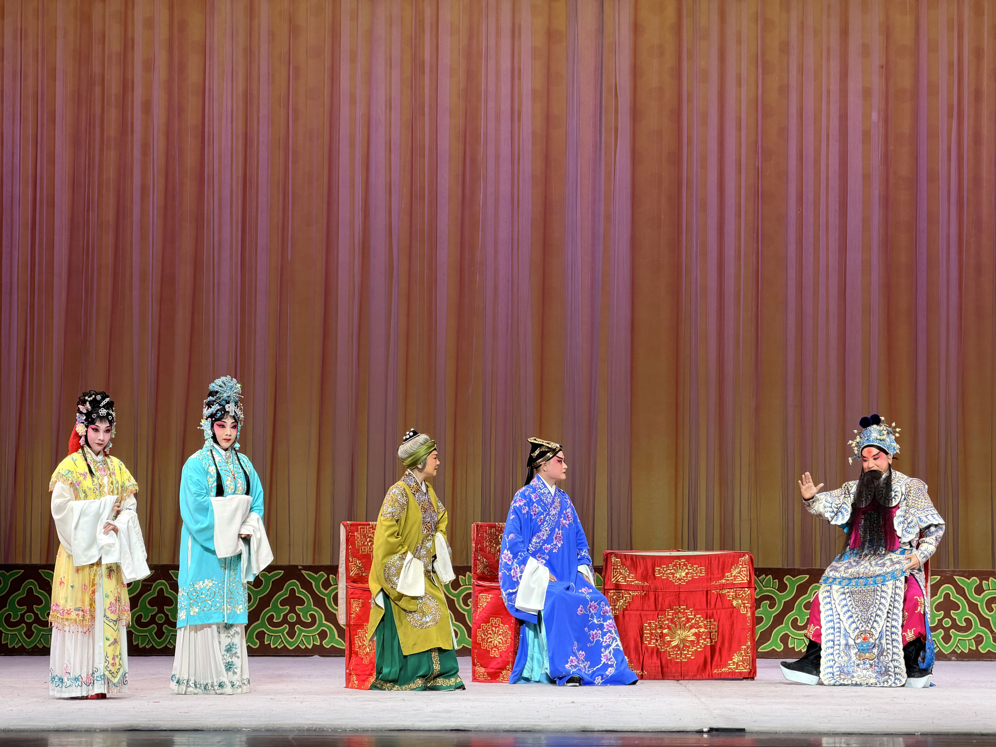 值得一提的是,常秋月不仅悉心指导,还把自己演《红娘》的专属演出服装带到了重庆。演出中,红娘在不同情境下换了多套戏服,或鹅黄或淡紫或橙红,俏丽动人,随着衣裙颜色愈加喜庆,也预示着崔莺莺与张珙好事将近。